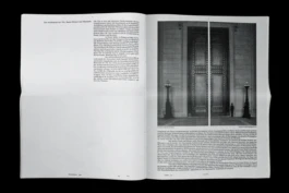 Der Text «Die Architektur der Tür» bildete die Grundlage für eine inhaltsbasierte Zeitungsgestaltung. Der ganze Text befindet sich auf dem Cover, ist aber gespiegelt: Wenn man die Zeitung öffnet, ist das wie beim Öffnen einer Tür. Die Formtexte visualisieren den Tür-Radius, wie man ihn aus Architekturplänen kennt. Auf den Innenseiten habe ich Textblöcke mit starken Einzügen integriert, die an Türfallen erinnern, während das gesamte Heft einem 2-Spalten-Layout folgt, inspiriert von einer Doppeltür.